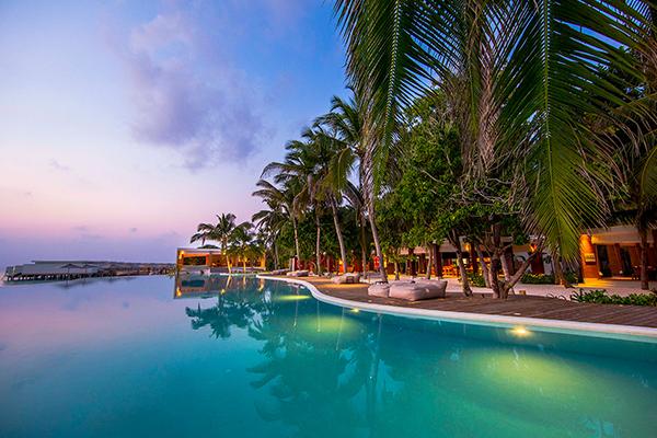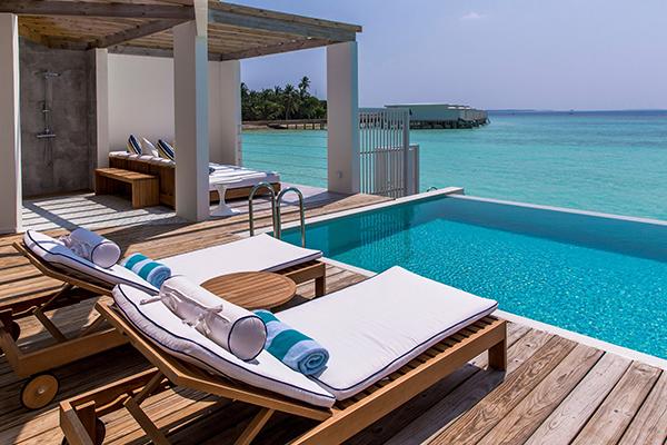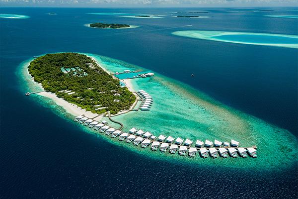 Finolhu has 126 rooms, 88 of which are over water, and a further 40 villa suites situated on a private island.