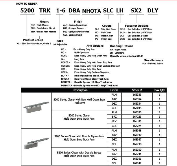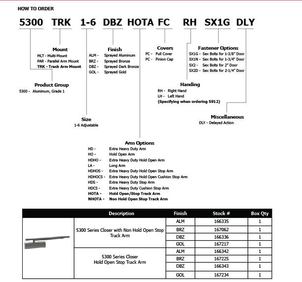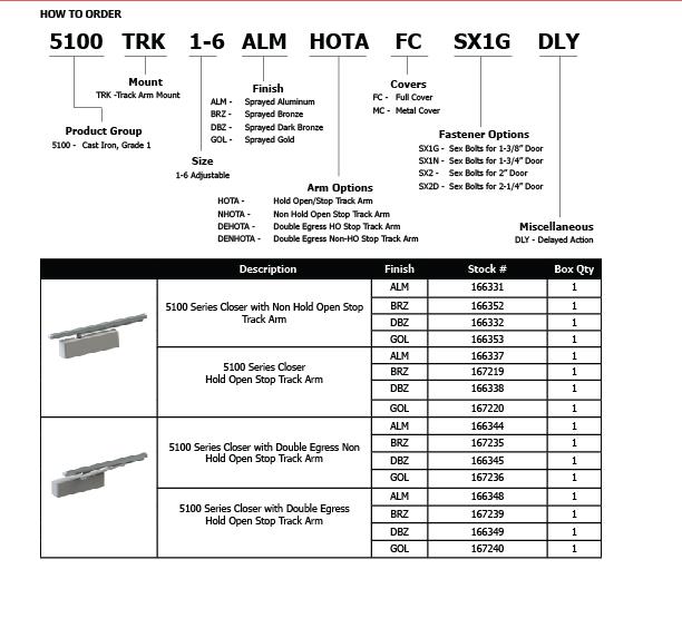 Slide Track Arms for 5100, 5200 and 5300 Series Door Closers