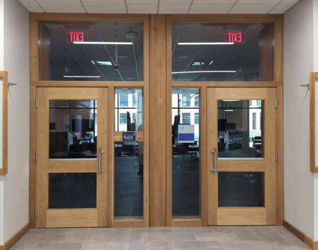 Hager provided Grade 1 products including Roton Continuous Geared Hinges, commercial hinges, electronically modified mortise locks and cylindrical locksets, door controls, and trim & auxiliary.