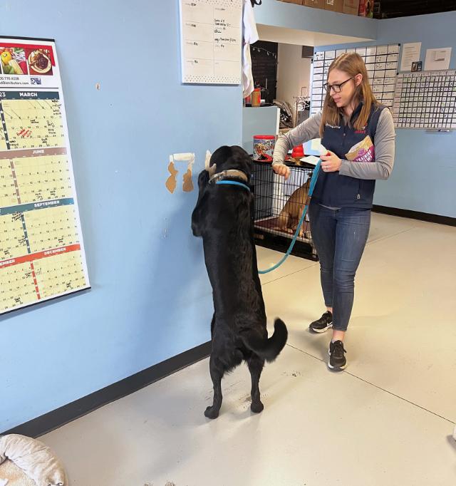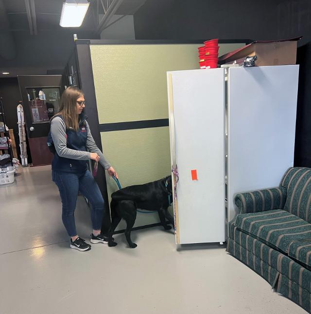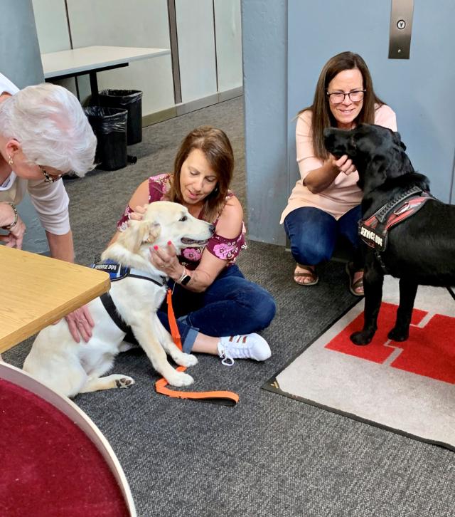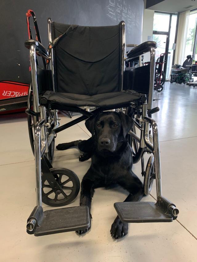 This month Hager visited us with his dog friend, Sasha, whose also being trained to be a service dog with Dogs for our Brave. Sasha is further along in the program and showed us how much Hager will be able to learn. We are excited to see his skills continue to progress!